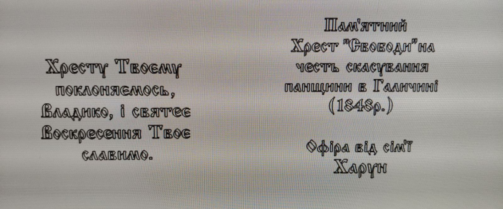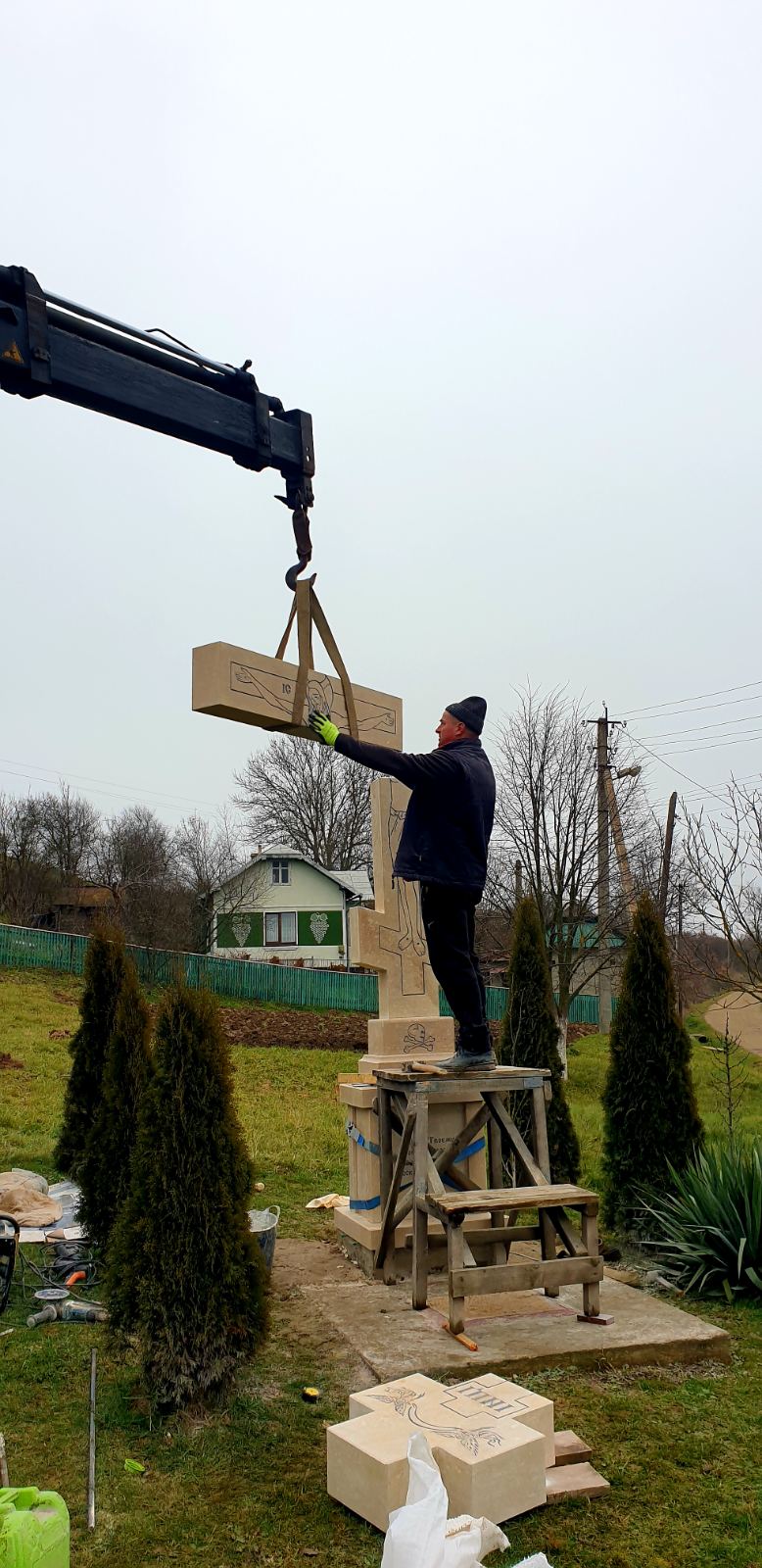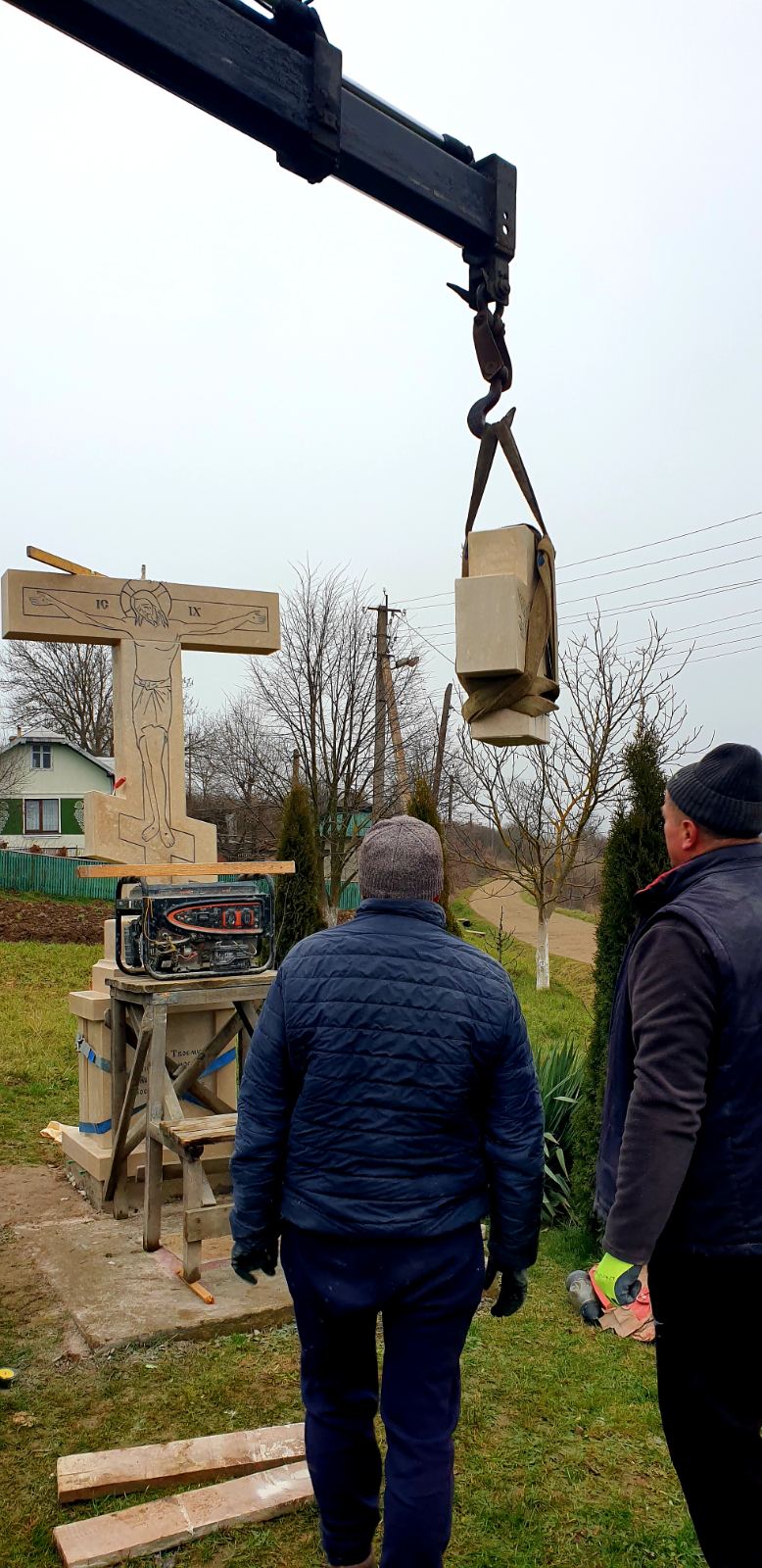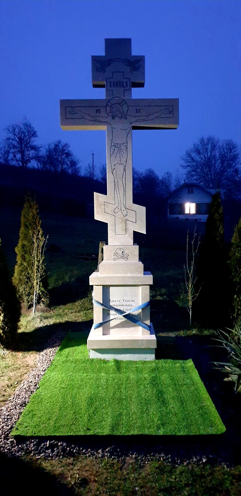 Слава Ісусу Христу! Дорогі брати і сестри дякуючи Богу в суботу 29.11.25 року Божого відбулось встановлення пам’ятного хреста на честь скасування панщини в Галичині в 1848р. Хрест це завжди нагадування усім нам що ми є християни і що через хрест відбулось спасіння світу, викуплення наших гріхів, через страждання, хресну смерть Господа Нашого Ісуса Христа. Вірю що встановлений хрест по дорозі до храму заставить кожного із нас зупинитись, поклонитись, перехрестившись помолитись і тоді Господь буде перебувати в нас і хрестом своїм охоронить нас. Вірю що цей кам’яний, православний хрест який є пожертвою від родини Харун Івана стане ще однією молитовною прикрасою нашого храму і села. Дякуємо жертводавцям і майстрам Колодій Любомиру головному майстру, Кравчуку Василю, Буковському Михайлу з Тернопільщини які встановлювали і виготовляли цей хрест. Спаси Вас Господи!